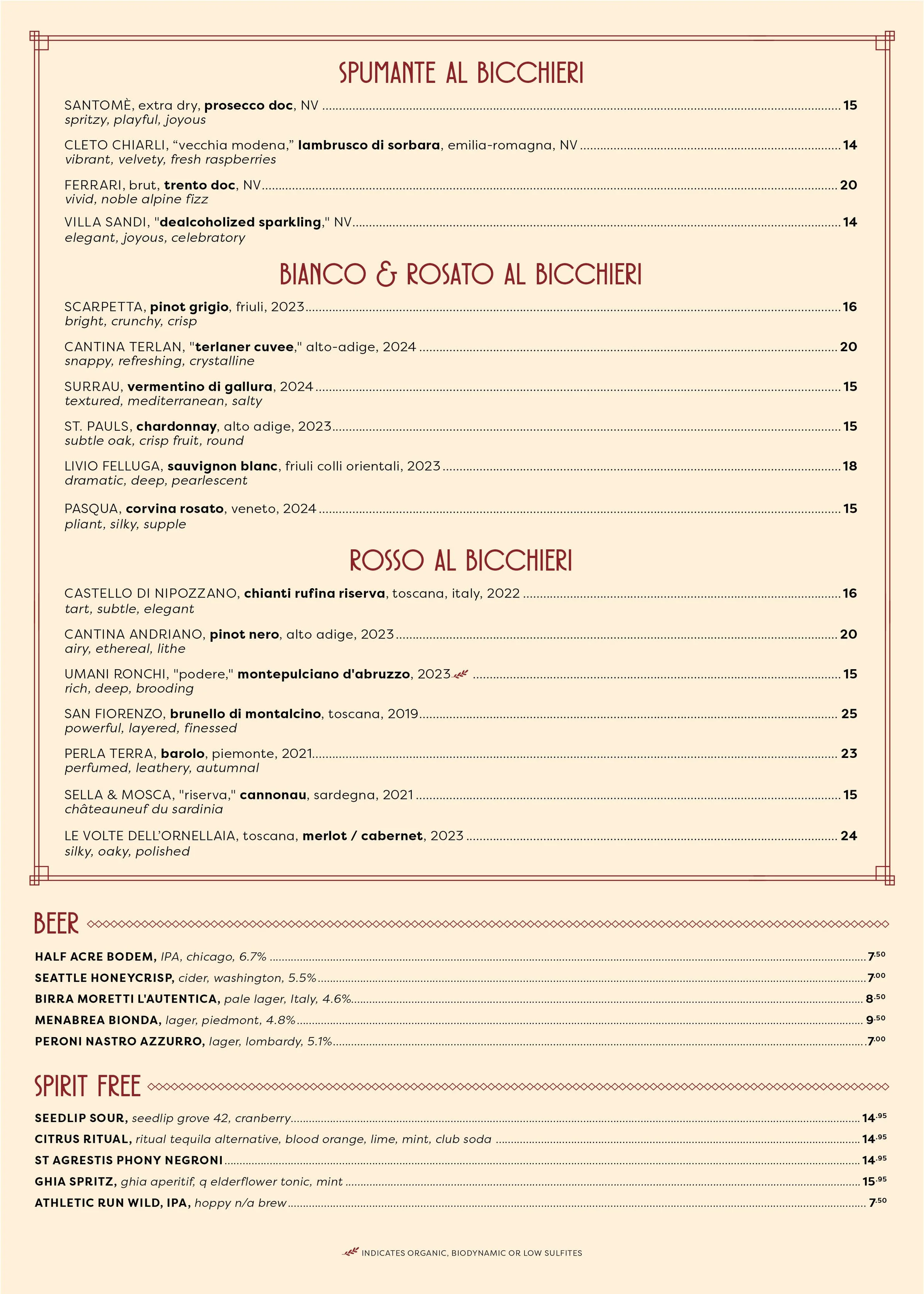 | NONINO CHARDONNAY, lemon meringue, honey, vanilla blossom | 14 |