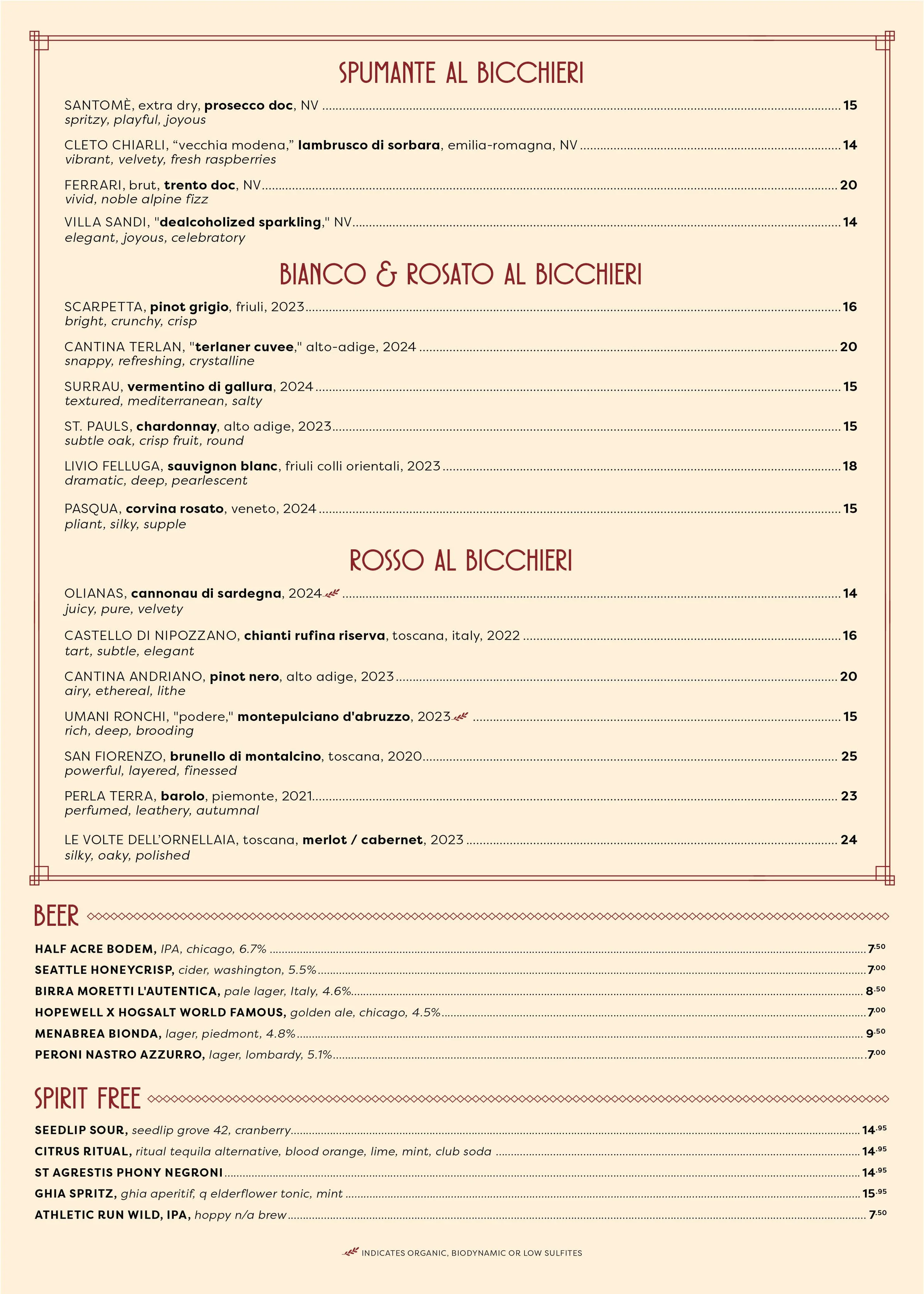| NONINO MOSCATO, rose, thyme, vanilla | 14 |